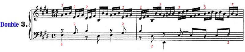 STYLE. What begins as a four-voice chorale, soon thins down to just two voices, then we have passages with 3, 4 and 5 voices. ... In spite of the French titles, this Air and Doubles are truly in Italian style, as confirmed by the original slurs in the first bars of the Double 1. ...
